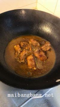 4.下入生抽,香醋,味精,倒入排骨汤,刚刚没过排骨为宜