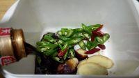 7.干红辣椒和鲜辣椒切段、姜切片。