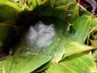 5.水淹过粽子叶,半个小时,至完全变软过凉水备用。