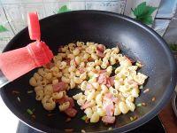 第一次做意面给女儿吃,煮的不够软,然后说到意面,她就说不喜欢。这一次的斗形意面,可爱造形,加了自晒虾米干,培根同炒,味道好,女儿又爱上了这种吃法。