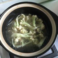 2.砂锅中加入半碗的羊肉汤,再加1碗清水,烧开;