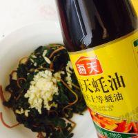 5.蚂蚱菜控干水分后加入大蒜,蚝油,生抽,鸡精拌匀。