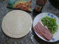 1.食材:披萨饼胚、培根、尖椒(已清洗切开)、番茄沙司、马苏里拉奶酪