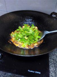 8.五花肉逼出油分后,调入适量郫县豆瓣酱翻炒均匀。