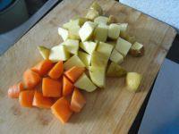 4. 把微熟的土豆丁、胡萝卜丁装盘备用