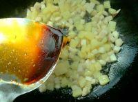 7.电饭煲准备好大火,注入比平时煮饭稍多一点的水。把炒好的土豆腊肠均匀铺在上面。