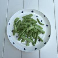 2.锅中加水烧开后,加少许盐、油,放入四季豆煮一分钟左右捞起。