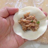 7.把肉馅汁,芝麻油,盐胡椒粉都倒入