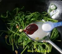 5.炒至颜色变深变软,加入蚝油和少许盐炒匀调味即可出锅装盘