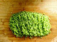 5.把芹菜切成碎末,然后用刀再剁的更碎一些。