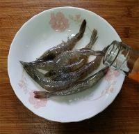 1.准备好所有食材,煎去虾须虾脚后洗净备用