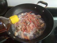 7.待花蛤大部分稍微有些开口,放入金钩虾,