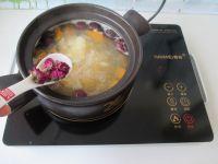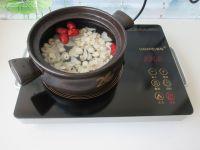4.将莲子和百合,红枣加入适量水放入砂锅中大火煮开后转小火慢煲。