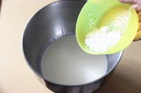 5.拌好的芒果泥倒入模具底部,抹平,放入冷冻室10分钟。