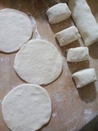 9.将面团揉匀,揉成长条,切成剂子擀成饼。
