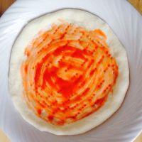 7.挤上番茄酱,把番茄酱涂抹均匀。