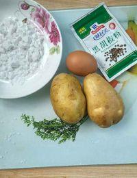 1.食材备好土豆2个,鸡蛋1个,以及黑胡椒,生粉(淀粉)