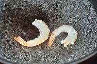 2. 烫虾仁时,水里最好放一片姜、少许盐和酒去腥。