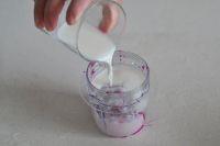 1. 火龙果切丁,加入白砂糖和牛奶。用料理机打碎。