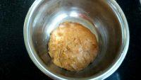 7.再放入不粘多用烤盘,用手按扁。小火煎熟。
