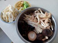 3.香菇切条,金针菇和木耳撕开,平菇掰开成细条。
