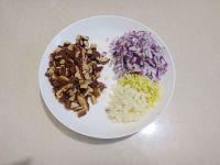 2.泡好的香菇切成小丁,洋葱、姜、蒜切碎备用。