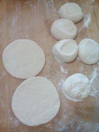 5.面团发酵至两倍大时,揉匀揉成长条,切成剂子擀成饼。