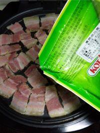 7.预热完毕后,放入腊肉,尽量平铺,不要重叠;启动“煎蛋/薄饼”程序;