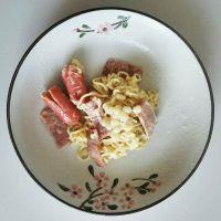没有意面没有口蘑的奶油培根方便面,热量满满啊哈哈