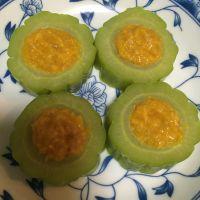 7.苦瓜中间填入炒好的燕麦南瓜馅