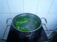 4.油菜心用开水焯一下。(立即放入凉水中,防止菜心变色。)