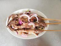 1、我用的鱿鱼是超市里卖的已经串好的鲜鱿鱼,不是那种泡发的鱿鱼,你也可以自己买鲜鱿鱼自己串了烤。