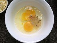 7.两个鸡蛋,加入许盐、胡椒粉搅匀备用