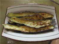 8.煎烤机烤肉档加热,将茄子皮朝下摆入烤盘