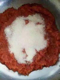 3.加入砂糖搅拌,放入不粘锅小火慢慢熬,切记要不停的翻