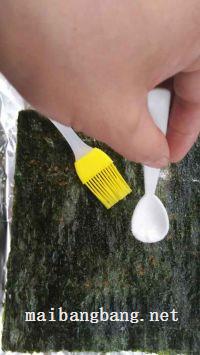 8.覆盖上第二片同样是刷油,撒放调料,我一共加了5片海苔