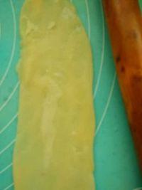 18.整成圆形按扁擀成圆形面皮,包入椒盐馅