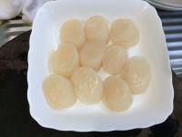 1.将冰鲜虾夷贝柱提前解冻,清洗干净后,用干净的抹巾吸干水分,备用。