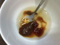 2.将黑椒酱、鲍鱼汁和清鸡汤倒入调味碗中,拌匀后,调配成调味汁。