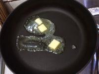 4.大火将平底不粘煎锅烧至7分热,下牛油化开,改中火。