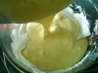 9.取三分之一蛋白到奶酪糊中,拌匀,