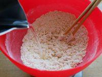 将面粉200克加一个鸡蛋和2克盐拌成雪花状。