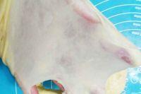 3.面团揉光滑后慢慢加入软化的黄油继续揉面至扩展阶段,如图状态即可(我是手工揉面的,不喜欢手工揉面的还是用面包机吧)