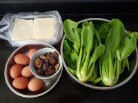 3.青菜洗净,用开水焯一下,捞出过清水,切碎,挤去部分水分。