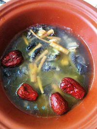 9.开大火炖了一个半小时后放入红枣,改小火慢慢炖,汤颜色已经变了