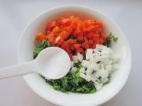 5.用凉水过凉,挤干水分切丁,洋葱切丁