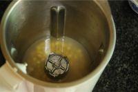 3.处理好的黄豆和大米放入醇浆机里,淋入黄芪水,加入700毫升清水