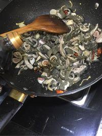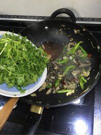 8.下入辣椒丝煸炒,可以加适量煮羊肚的底汤防止太干影响口感