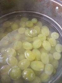 葡萄是我们这里的特产,说到白牛奶这个品种,大家立刻就会馋得不行,但是白牛奶葡萄要到中秋节才最甜最好吃,昨天买了三斤,哎呀有点儿酸!只好煮糖水了,毕竟是白牛奶呀,煮糖水非常好吃,颜色也变成白牛奶最成熟的那个颜色了,很诱人!
