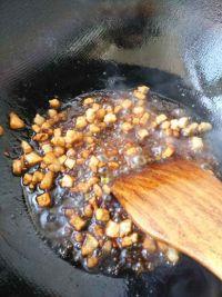 6.翻炒至瘦肉变色,加入料酒和酱油翻炒均匀
